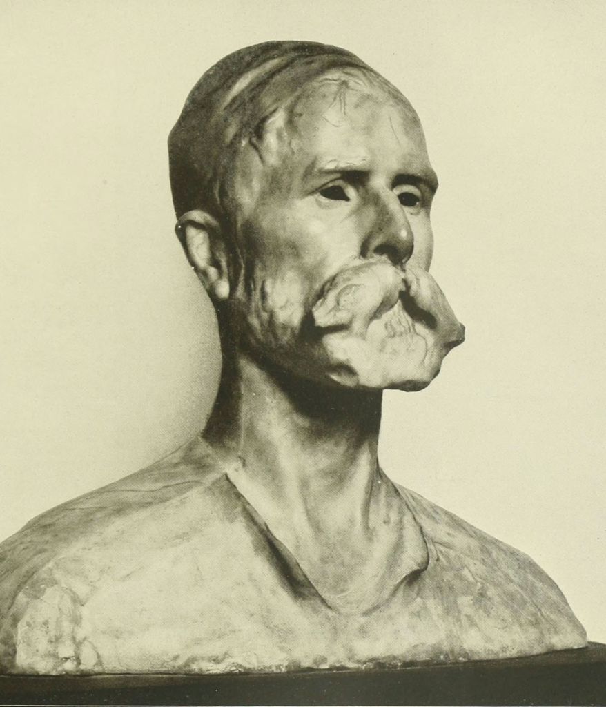 testa di fanciulla dolente in bronzo presentata all'Esposizione della